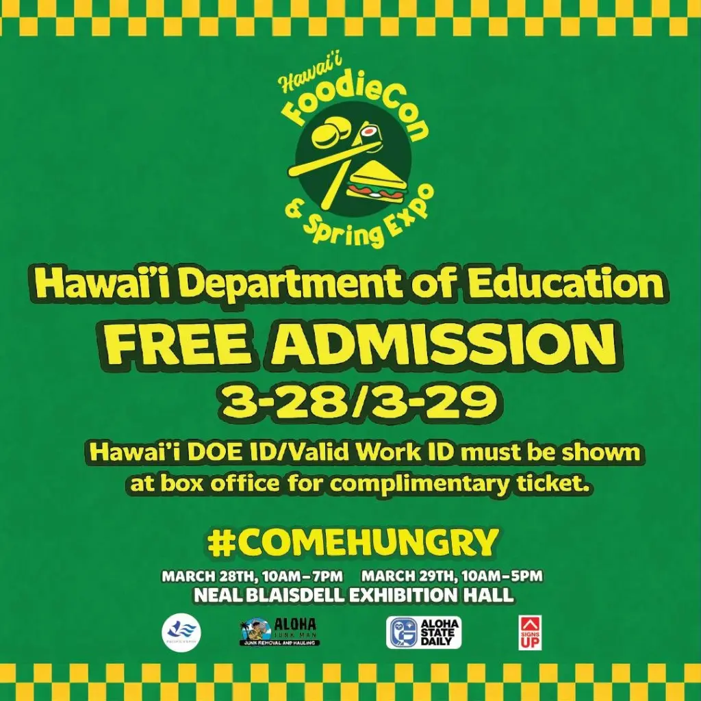 Pacific Expos selects an industry at each show for FREE ADMISSION & would like to “MAHALO” the HAWAI’I DOE Teachers. Please show a Hawai’i DOE ID or Valid educator school ID to receive FREE admission at the Blaisdell Box Office.